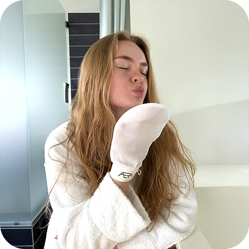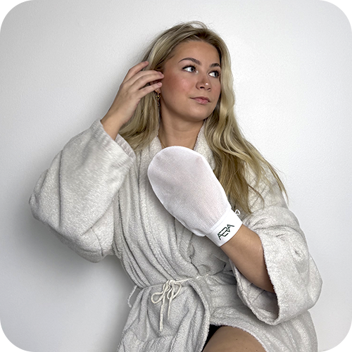 Kemisk eksfoliering bruger syrer til at løsne døde hudceller, mens mekanisk eksfoliering, som med vores handske, fjerner dem fysisk ved at skrubbe huden. Fordelen ved mekanisk eksfoliering er, at den giver øjeblikkelige resultater, hvor du med det samme kan mærke en glattere hud. Den stimulerer også blodcirkulationen, hvilket kan forbedre hudens sundhed på lang sigt.